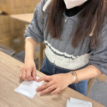 次に封緘していきます。袋を閉じた部分が綺麗になるよう丁寧に行います。