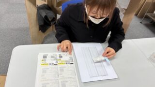 ノベルティ用品へのシール貼り作業